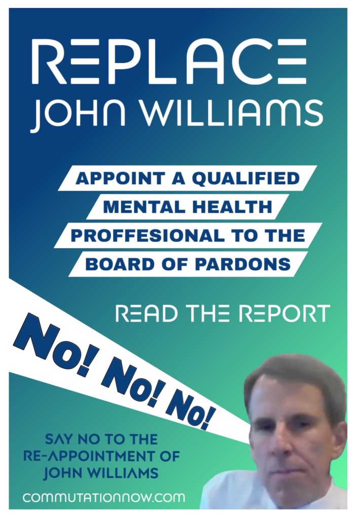 - Board of Pardons member John P. Williams, a psychiatrist who has not worked in a state prison or with incarcerated people, routinely asks commutation applicants inappropriate questions reflecting “lurid curiosity.”